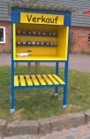 Angefangen hat der Hofverkauf mit unserem Verkaufsstand in "IKEA-Farben". Dort haben wir die ersten Beerensäfte und Fruchtaufstriche angeboten. Es gab eine kleine Preisliste und ein Marmeladenglas zum Einwerfen der abzurechnenden Euros --- wie man es auf dem Lande so macht. Vertrauen gegen Vertrauen.