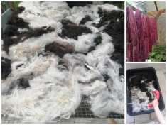 Heute war Badetag angesagt. Mein Jungtrainer bestand schon vor Beginn seines Tagesjobs (Kindergarten) darauf, dass das Alpaka baden geht. Nach dem Mittagessen hat er dann mit mir ausgewaschen, jetzt hängt es faul in der Wollmatte. Das Lila war dann auch für entspannen. Ist denn schon Ruhetag??? Sollte ich es heute noch aufs Rad schaffen melde ich mich nochmal mit Ergebnissen...