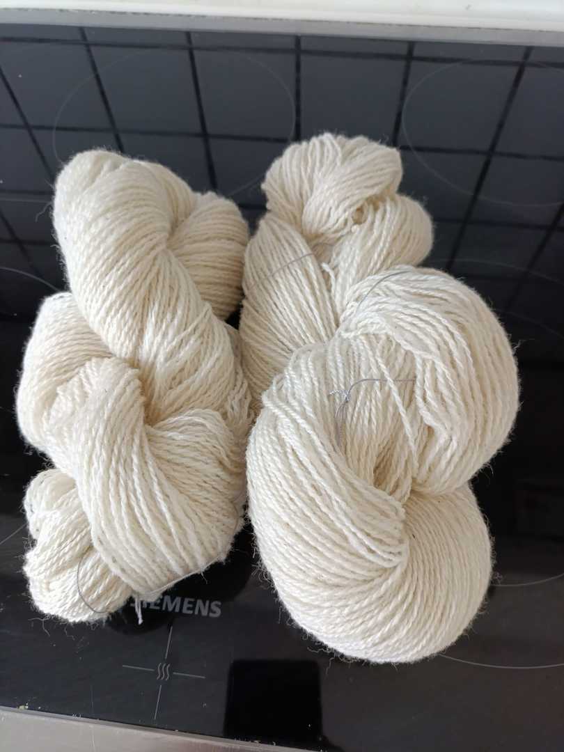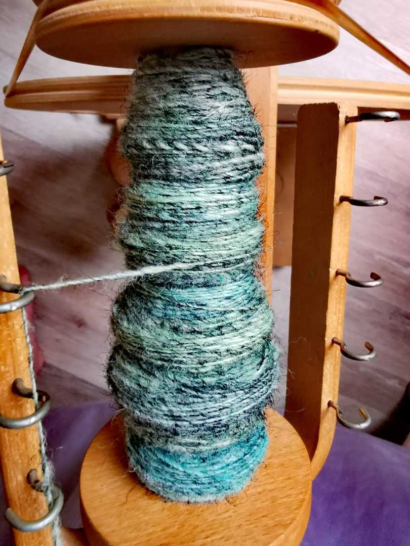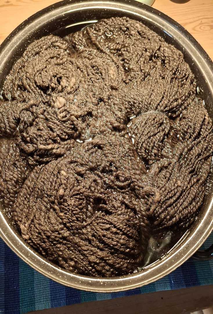 Die Wolle von gestern, die ich dann noch verzwirnt habe, ist jetzt auch zum Entspannen bereit.
